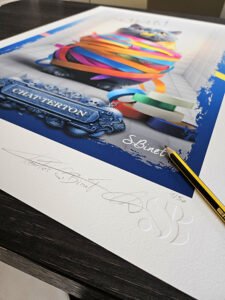 Chaque tirage est signé à la main, numéroté (50 exemplaires) et gaufré des initiales.